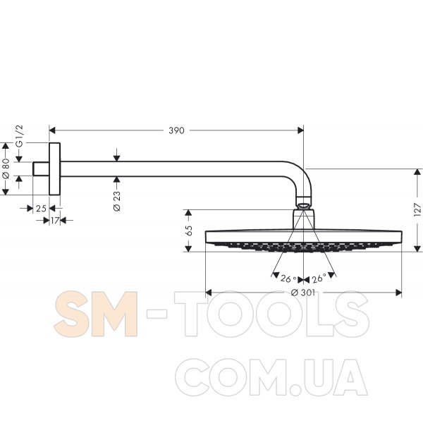 - диаметр душевого диска: 300 мм