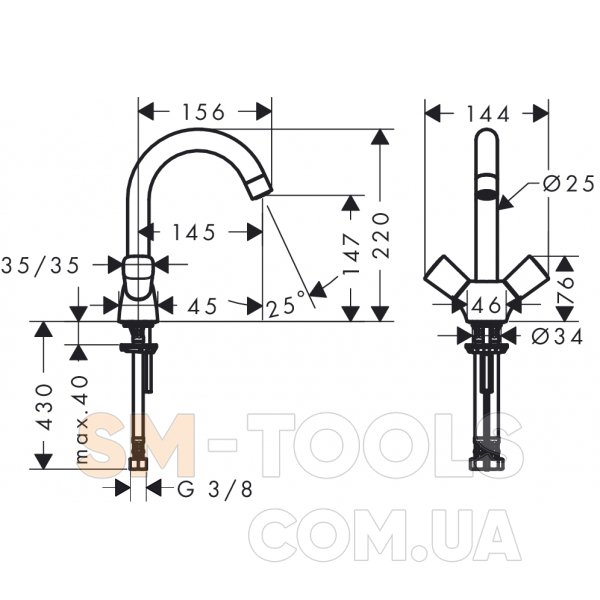 - угол поворота излива 120°