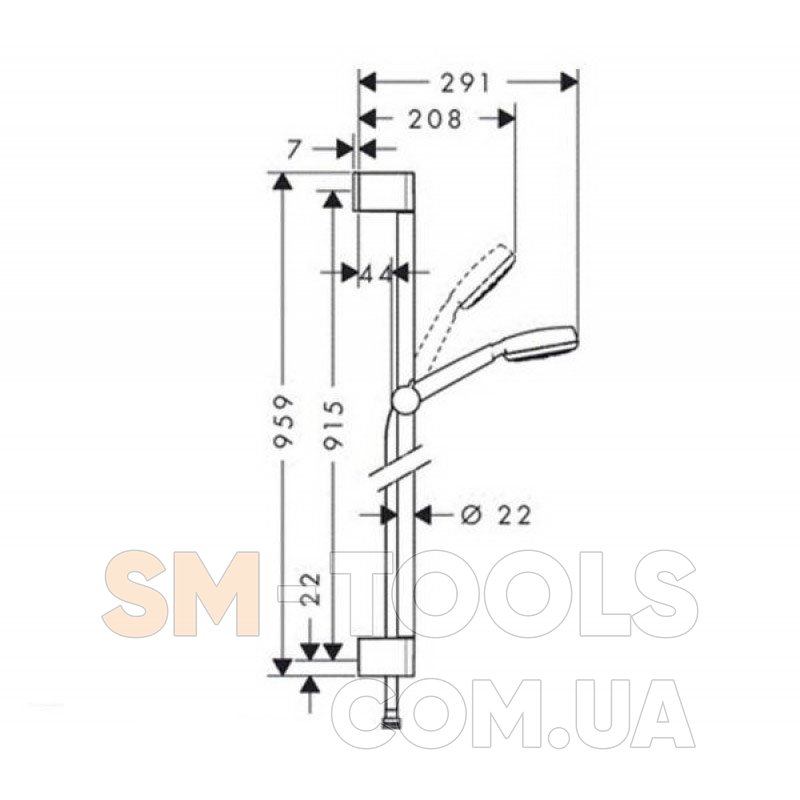 - размер душевой штанги 900 мм
