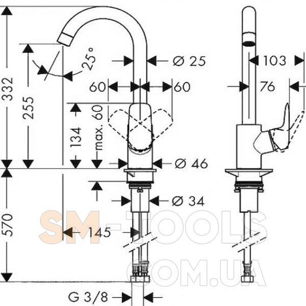 - угол поворота излива регулировка на 3 уровня на 110°, 150° или 360°