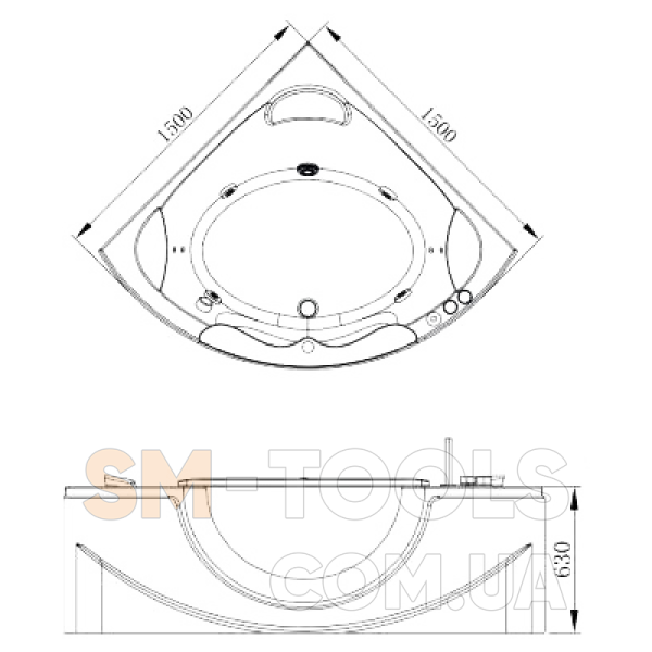 Размеры (ДxШxВ) - 1500x1500x630 мм
