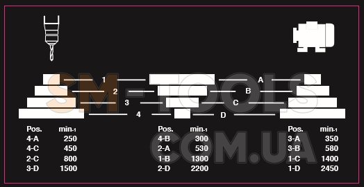 Частота вращения шпинделя: 250-2450 об/мин (12-ступенчатая)
