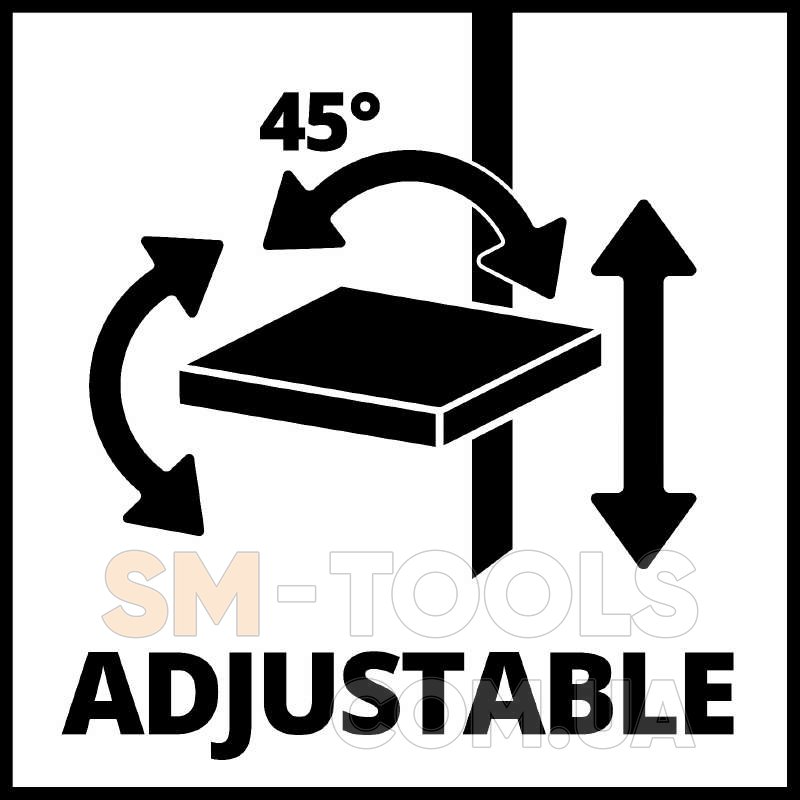 Регулировка наклона стола: -45 ° - +45 °