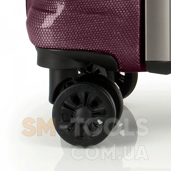 Колеса изготовлены из высокотемпературного термопластичного полиуретана (TPU). Материал обладает прочностью сравнимой с пластиком, гибкостью силикона, а так же имеет повышенную устойчивость к перепадам температур. Отличительной особенностью колес из TPU материала является снижение шума до минимума при качении чемодана по неровной поверхности. Благодаря устойчивости к истиранию материал колес отличается длительным сроком эксплуатации.