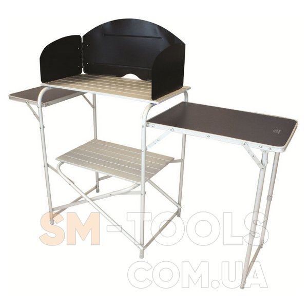 Для тех, кто привык к полноценному дневному меню, походная кухня Highlander Kitchen Stand and Folding в палаточном городке будет весьма к стати. Она поможет организовать удобное место для приготовления пищи, ускорить и оптимизировать этот процесс. Высокая встроенная ветрозащита - важный аксессуар, защищающий с трех сторон газовую горелку или плиту от ветра. Два боковых столика и полка значительно увеличивают рабочую площадь. Кухня выполнена из качественных материалов (алюминий, ламинированная МДФ плита), компактно складывается для хранения и транспортировки. Походная кухня Highlander Kitchen Stand and Folding, безусловно, добавит комфорта Вашему досугу.