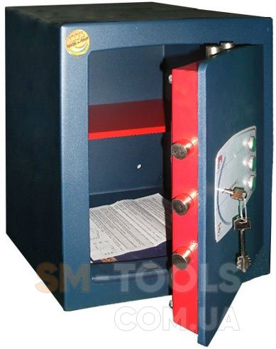 Усиленные стальные внутренние петли разрешают открывать двери сейфа на 90 градусов.