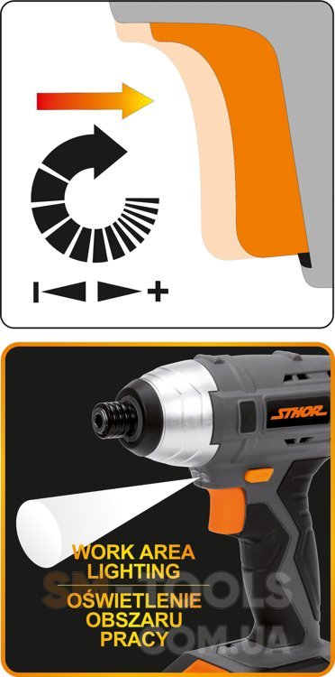 Ударный аккумуляторный шуруповерт STHOR 78961 с функцией тангенциального удара, предназначен для слесарей, механиков и плотников, для затяжки и выкручивания болтов с максимальным диаметром M14. Позволяет также эффективно закручивать шурупы в древесине размером до 130 мм и диаметром до 3.5 мм.