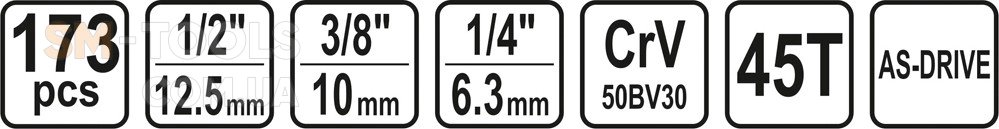 Трещотка 45T: 1/4", 1/2", 3/8";