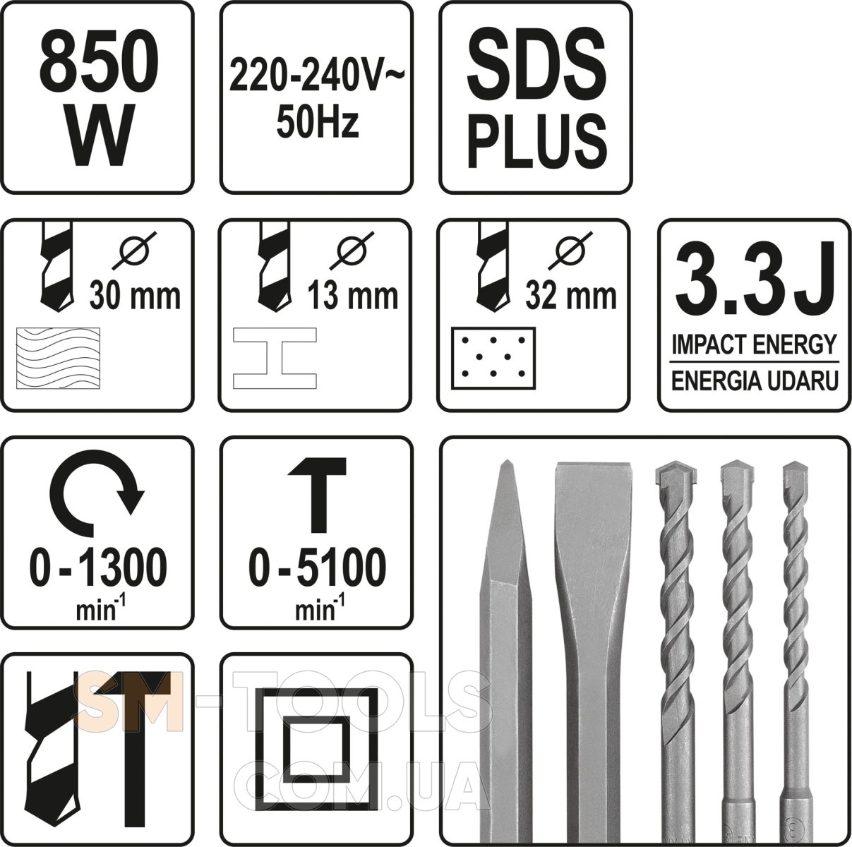 Максимальный диаметр сверления (бетон) – 32 мм