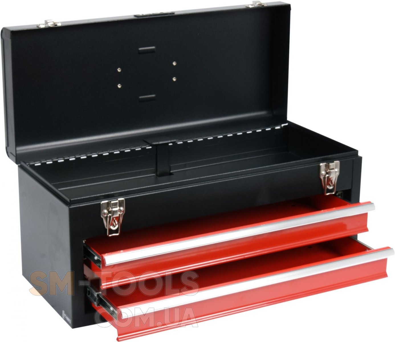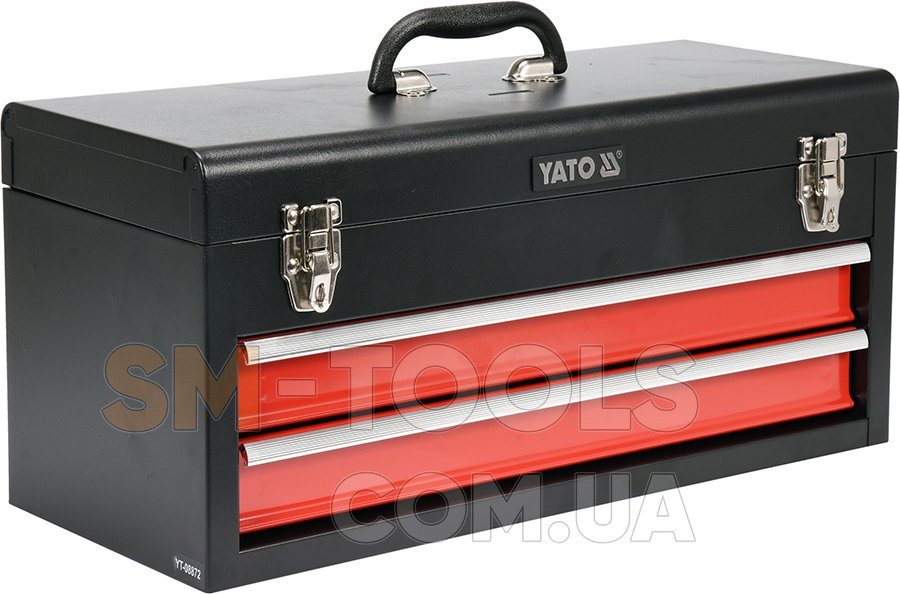 Ящик YATO YT-08872 предназначен для хранения ручных инструментов в мастерской. Оснащен выдвижными шуфлядами, а также имеет дополнительный верхний отсек, который закрывается металлическими защелками.