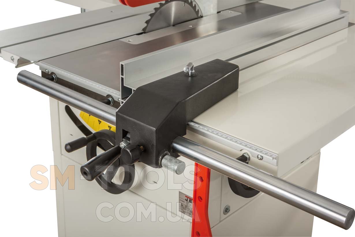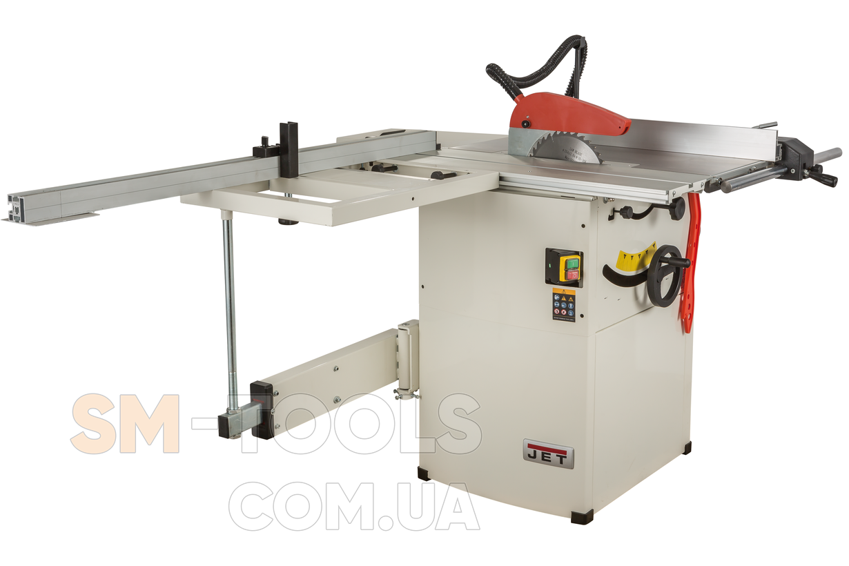 Jet JTS-600X – компактная циркулярная пила с подвижным столом на телескопической опоре. Станок позволяет в условиях небольшой мастерской работать с форматами до 600 мм, а также решает все типовые задачи, связанные с продольной распиловкой древесины. Расширения и удлинения столов (пильного и подвижного) выполнены съемными, что удобно при работе в ограниченном пространстве и при хранении. Все эти принадлежности и приспособления (пильный диск, упоры, расширения и т.п.) включены в стоимость базового комплекта, докупать отдельно ничего не нужно, разве что подставку с колесами для перемещения по мастерской.