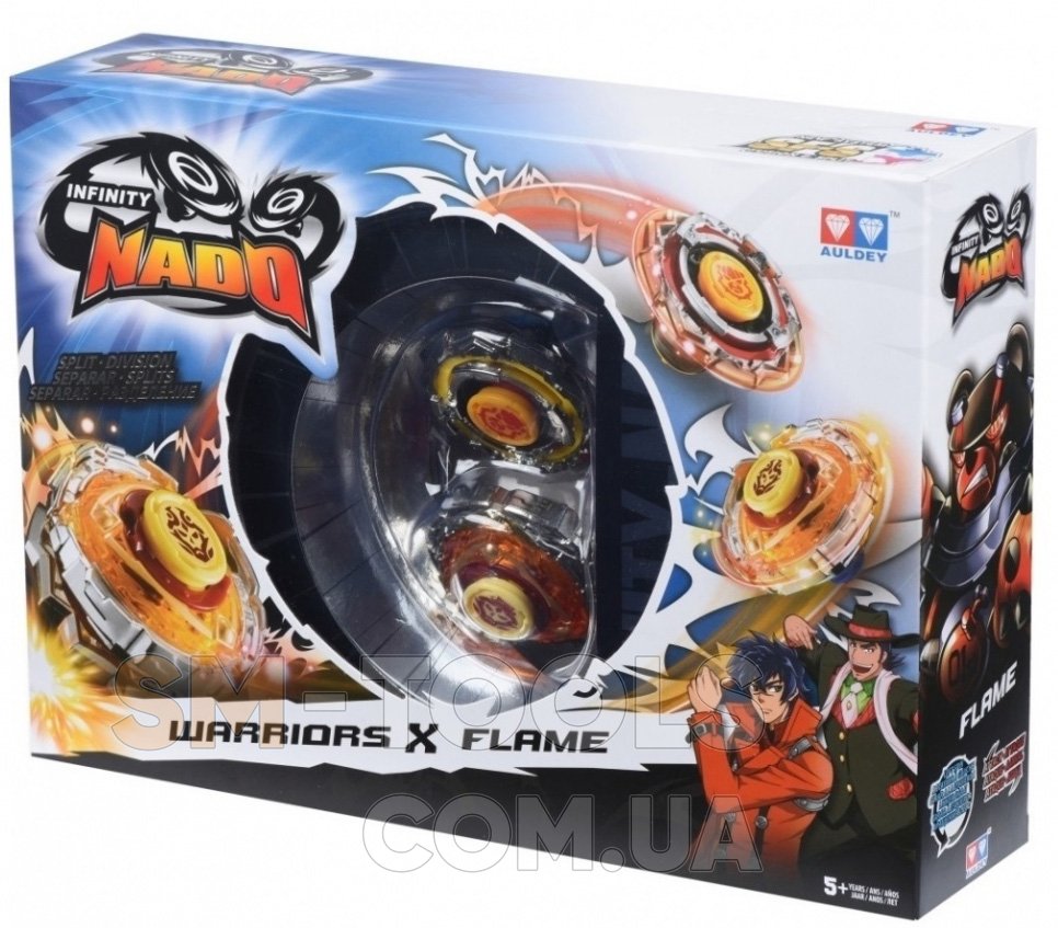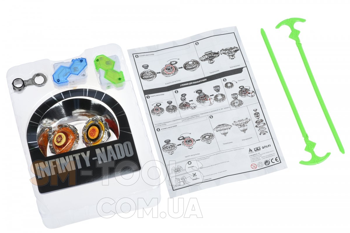 Волчок легендарной серии турнирных бойцов Infinity Nado с устройством запуска в комплекте, инновационный дизайн и комплектация 2 в 1. Один волчок Nado может быть разделен на два и получить две разные тактики в боях. Имеет два металлических кольца для их изменения. Может быть переоборудован дополнительными аксессуарами, чтобы превратиться в другой тип. Способен побеждать бойцов отличающихся от Nado армии волчков.