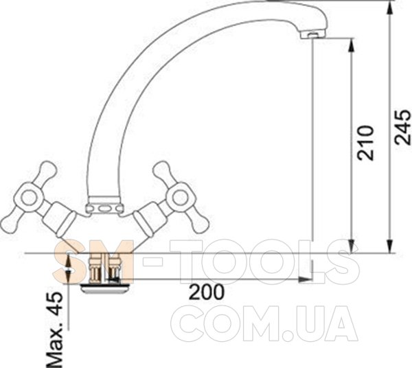 Franke Ambra - двухвентильный смеситель с поворотным изливом. Высота излива - 210 мм, а длина - 200 мм. Керамический картридж.