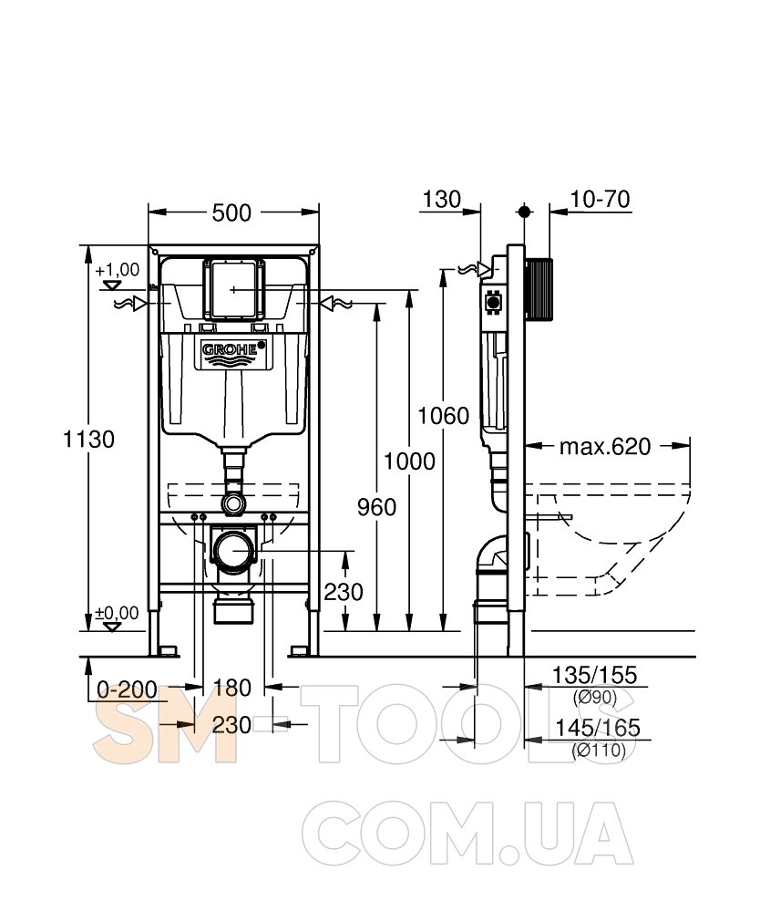 Высота (мм) 1130