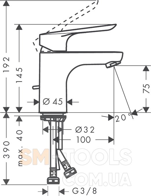- вынос излива - 100 мм