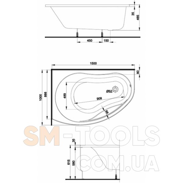 Ванна KOLO Promise 150x100 L XWA3051000+311537 + ножки SN7 + сифон Simplex