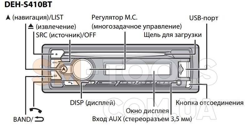 Система DEH-S410BT с привлекательным дизайном 1-DIN. Прилагается большой ДУ Rotary Commander с удобно расположенными кнопками предустановки и настройки любимых радиостанций и многими другими функциями.
