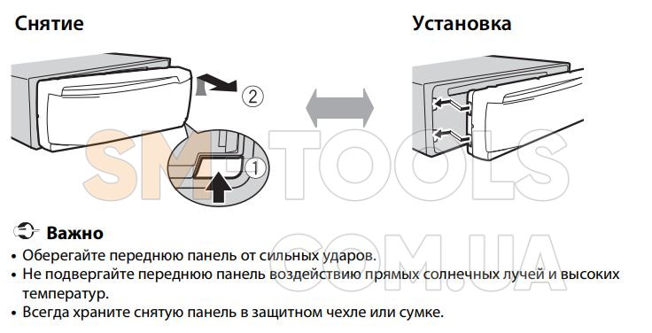 Снимите переднюю панель во избежание кражи. Перед снятием панели отсоедините кабели и устройства, подключенные к передней панели, и отключите устройство.