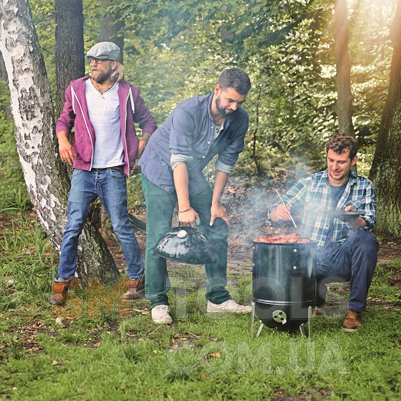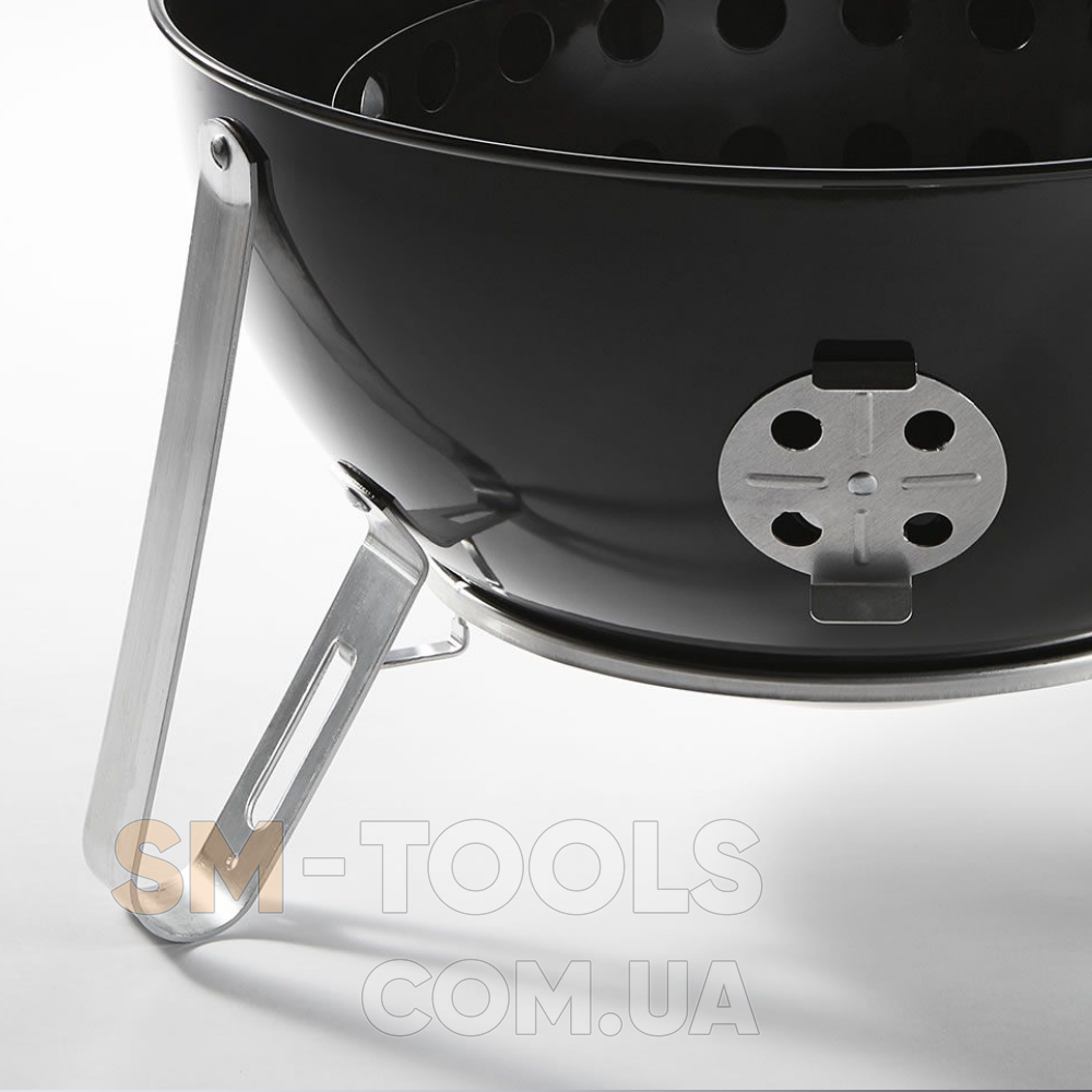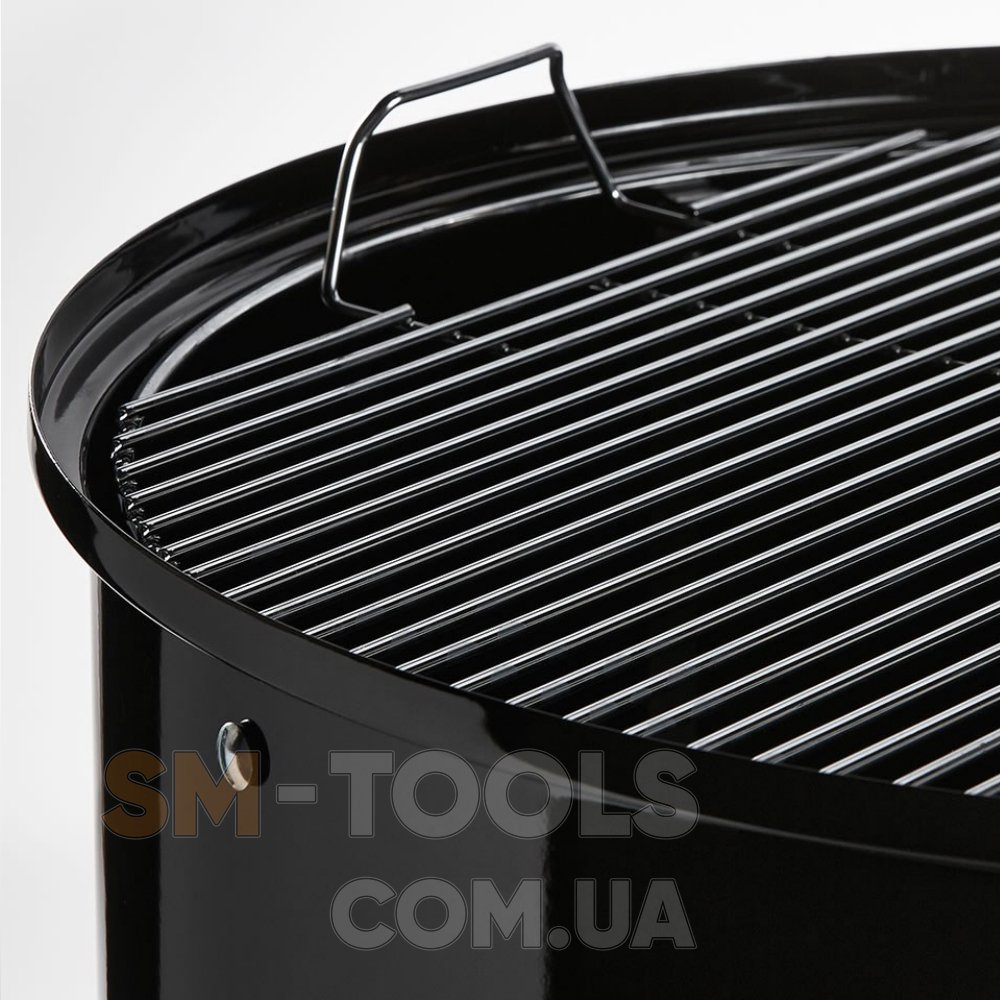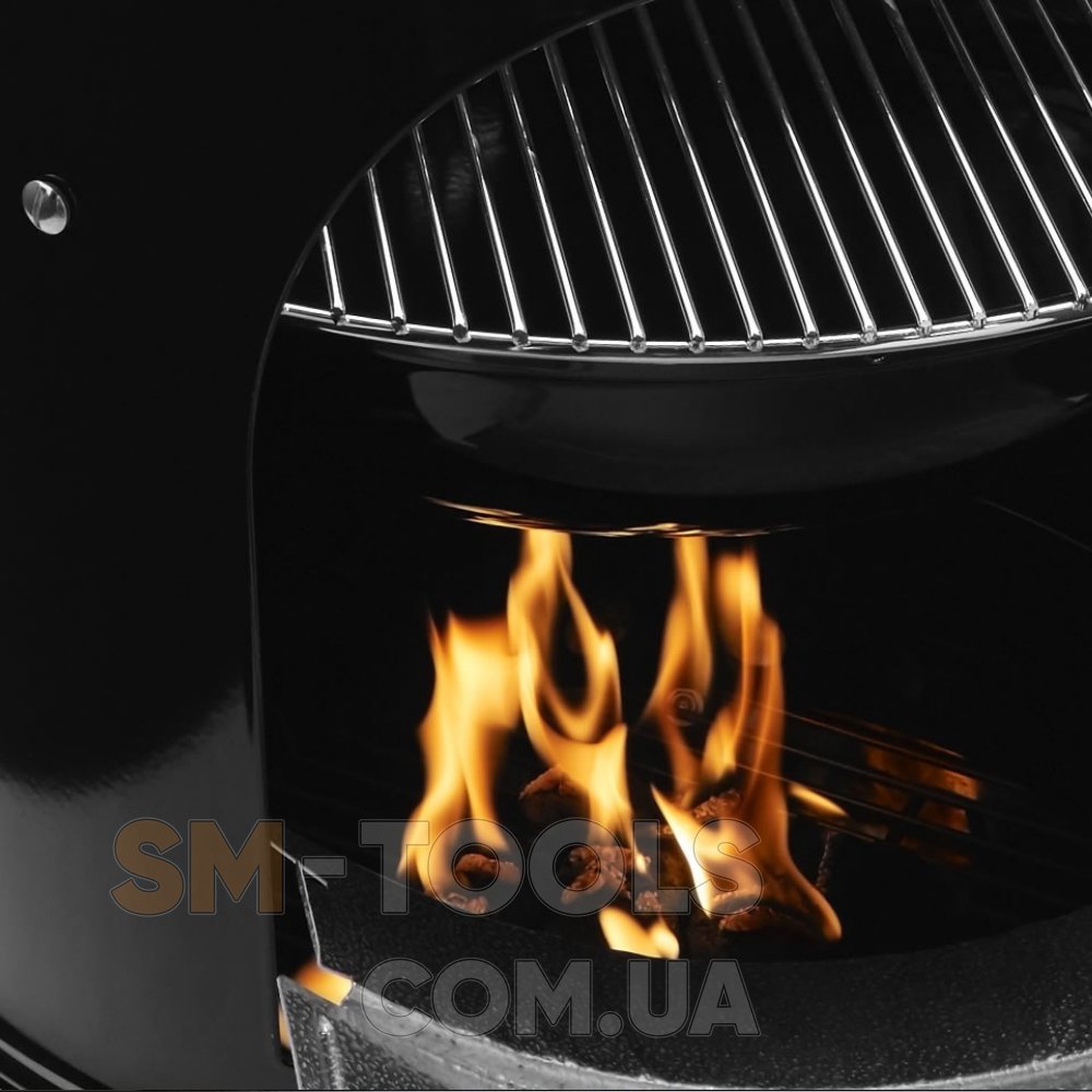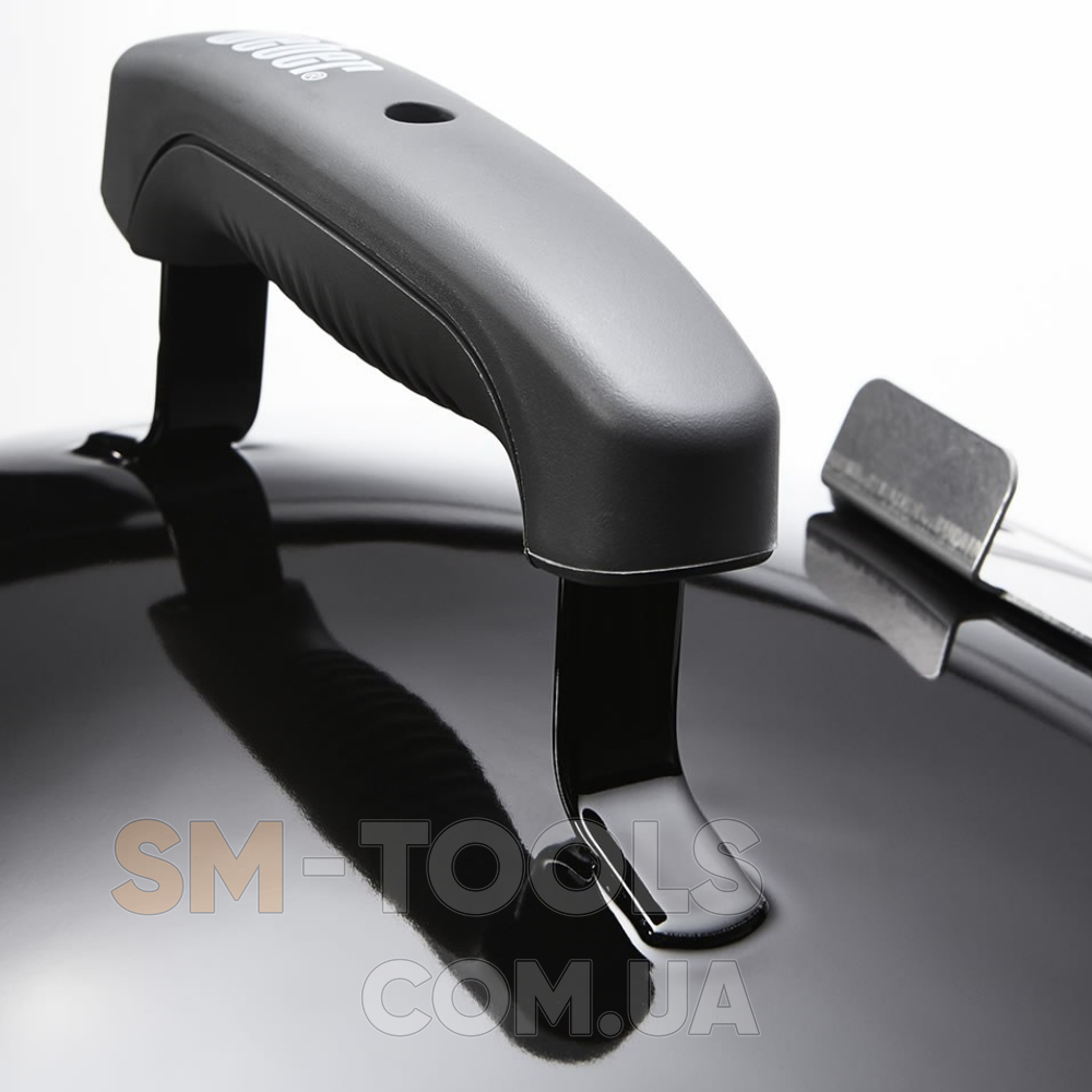 - Крышка и котел изготовлены из жаропрочной стали, покрыты фарфоровой эмалью изнутри и снаружи, что позволяет оставлять гриль на улице в любую погоду.