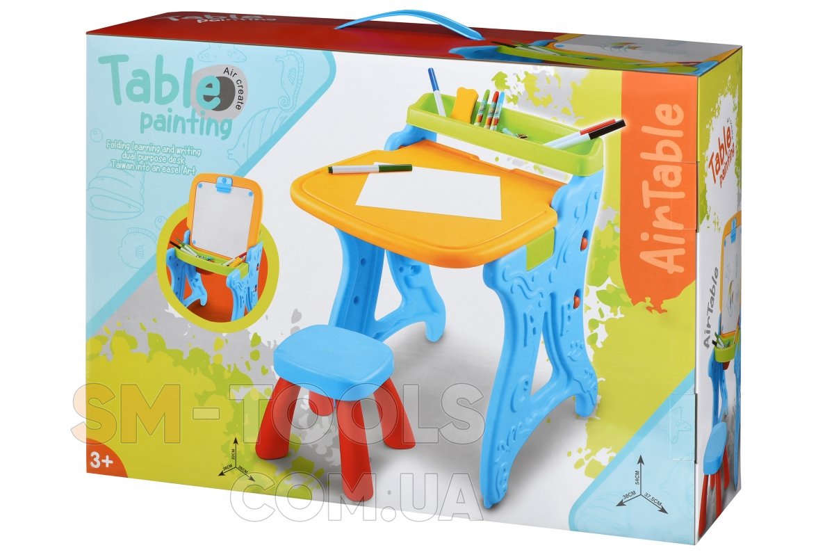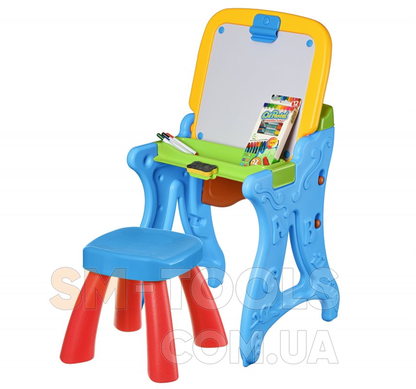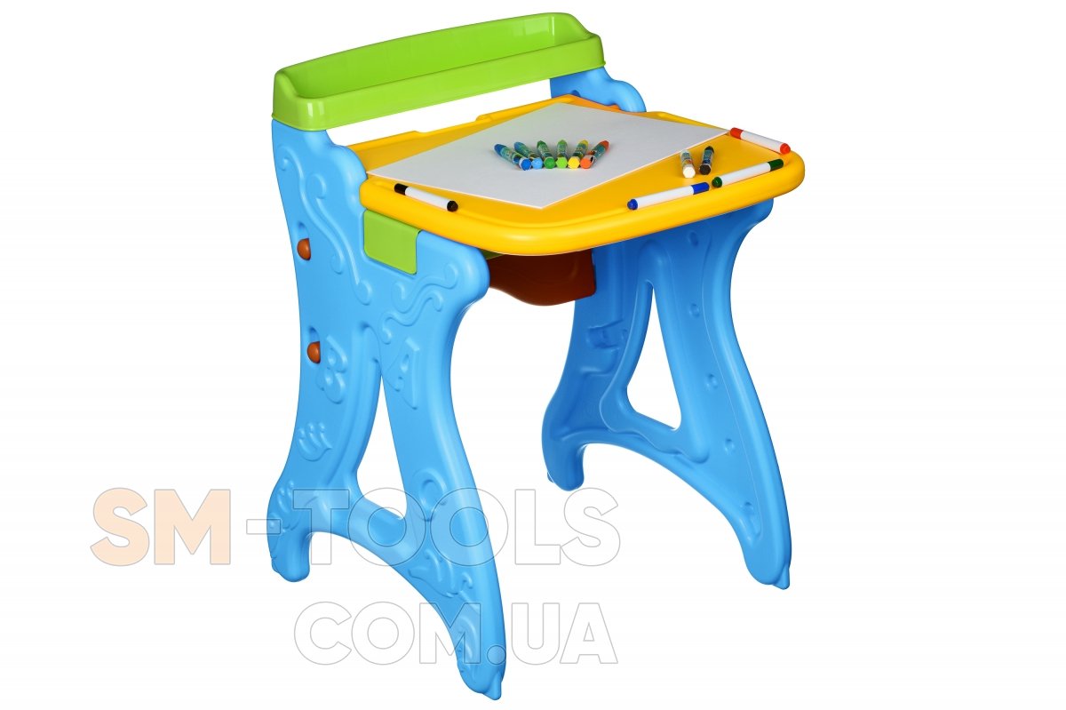 Дети с удовольствием будут заниматься живописью и рисовать с их новым столиком для творчества голубого цвета. Изготовлен из качественного плотного пластика. Все углы скруглены для безопасности ребенка. Его можно использовать как место для игр, творчества, а также, как обеденный столик и парту. Главная особенность - возможность трансформировать мольберт в детский столик-парту. Развивающий набор поможет ребенку подготовиться к школе, научиться писать, считать и развить творческие способности. Рекомендуемый возраст: от 3-х лет.