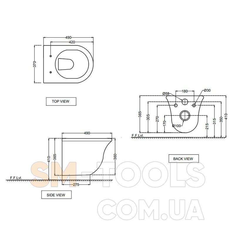 Габариты унитаза (ВхШхГ) 36.5 х 37 х 49 см