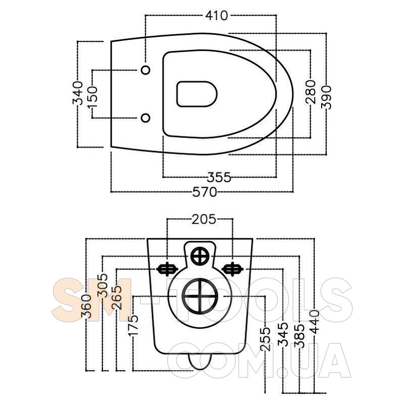 Габариты унитаза (ВхШхГ) 37 х 40 х 58 см