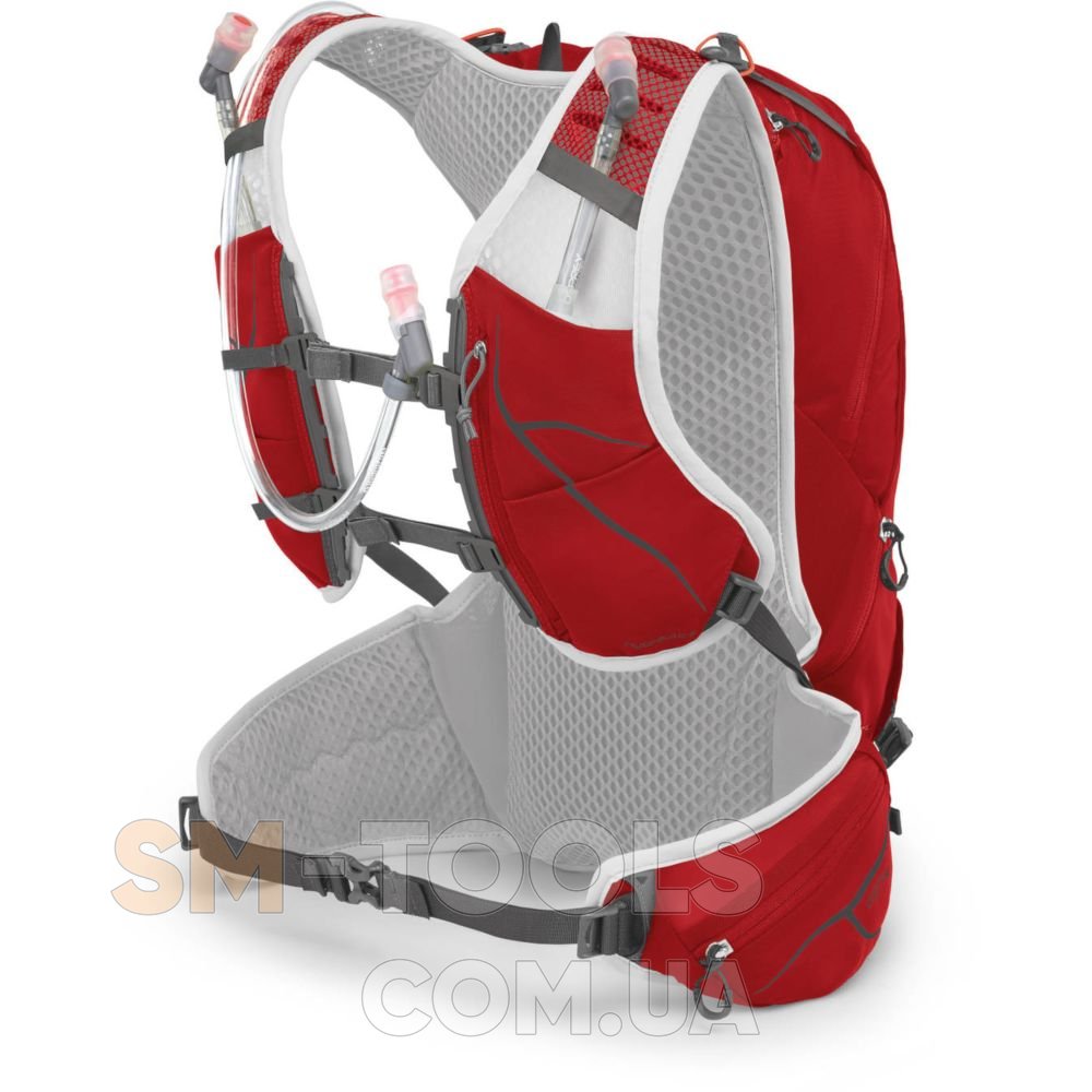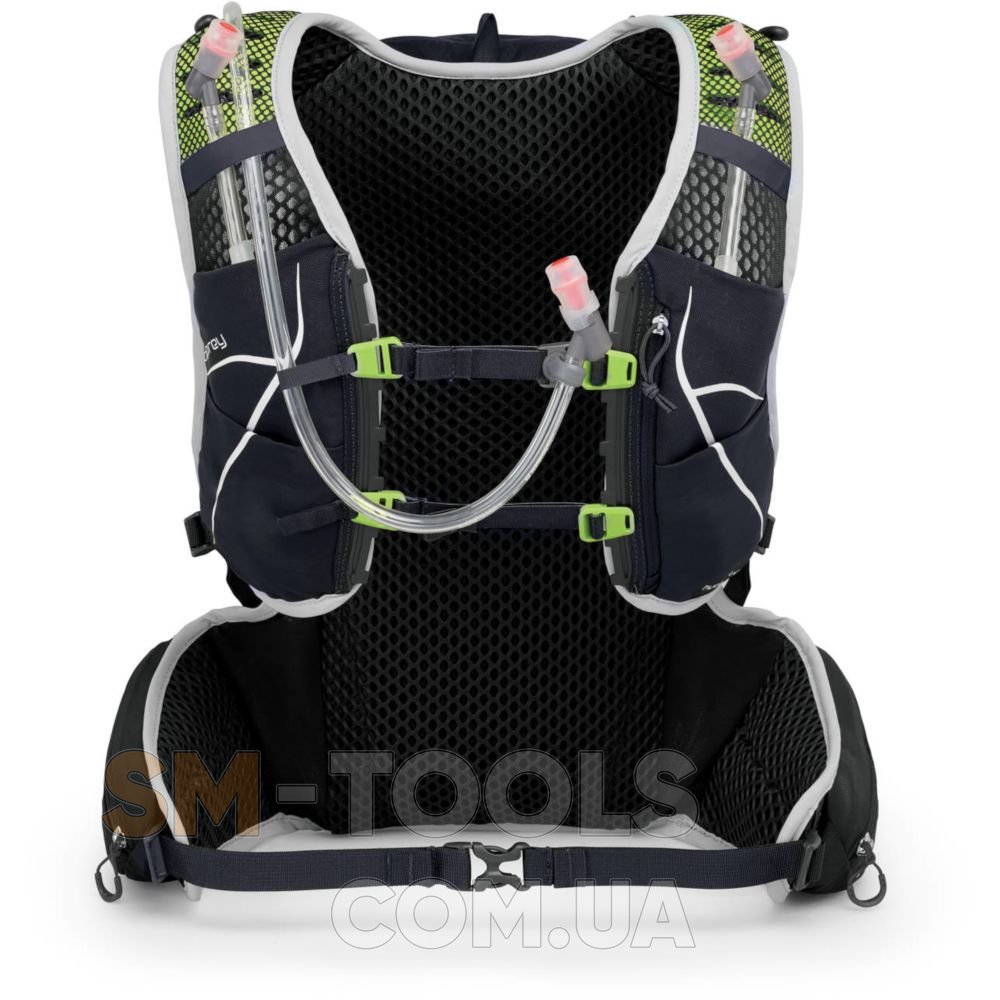Osprey Duro 15 – это высокоэффективный, функциональный и вместительный беговой рюкзак, предназначенный для поддержки спортсменов на больших дистанциях, когда нужно много места для хранения воды, пищи, дополнительной одежды и снаряжения. Он имеет конструкцию жилета и оснащен обтягивающим набедренным поясом, что гарантирует идеальную посадку и высокий уровень комфорта во время бега. Duro 15 обшит приятной к телу сетчатой тканью, которая обеспечивает отличную вентиляцию и ощущение комфорта даже во время интенсивного движения. Карманы на молнии на передней части жилета и набедренного пояса дают быстрый доступ к вещам, а эластичные грудные стяжки не сковывают движений. Кроме того, модель оснащена интегрированным резервуаром 2.5L HydraulicsТМ LT и двумя мягкими колбами по 500 мл в верхних карманах жилета, что в целом позволяет перевозить 3,5 л воды.