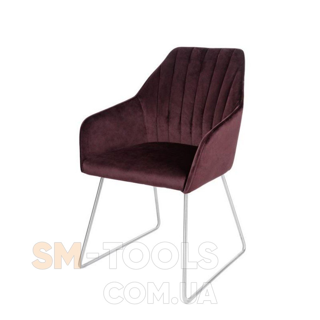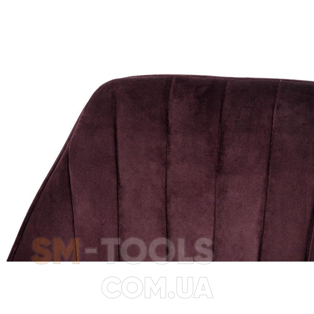 Стул обтянут мягкой, бархатистой и приятной на ощупь тканью, напоминающей велюр. Такой обивочный материал прошёл необходимые тесты на износоустойчивость, поэтому можно использовать кресла в заведениях сегмента HoReCa.