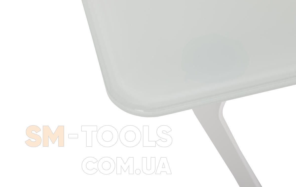 Столешница выполнена из качественного и прочного каленого глянцевого стекла, ноги - крашенный металл белого цвета.