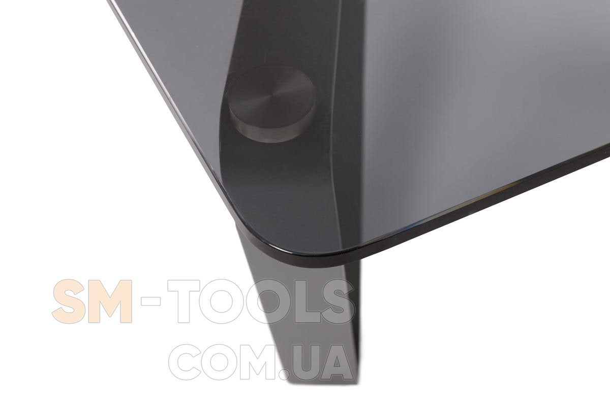 Столешница выполнена из качественного и прочного каленого глянцевого прозрачного стекла , ноги - крашенный металл черного цвета.