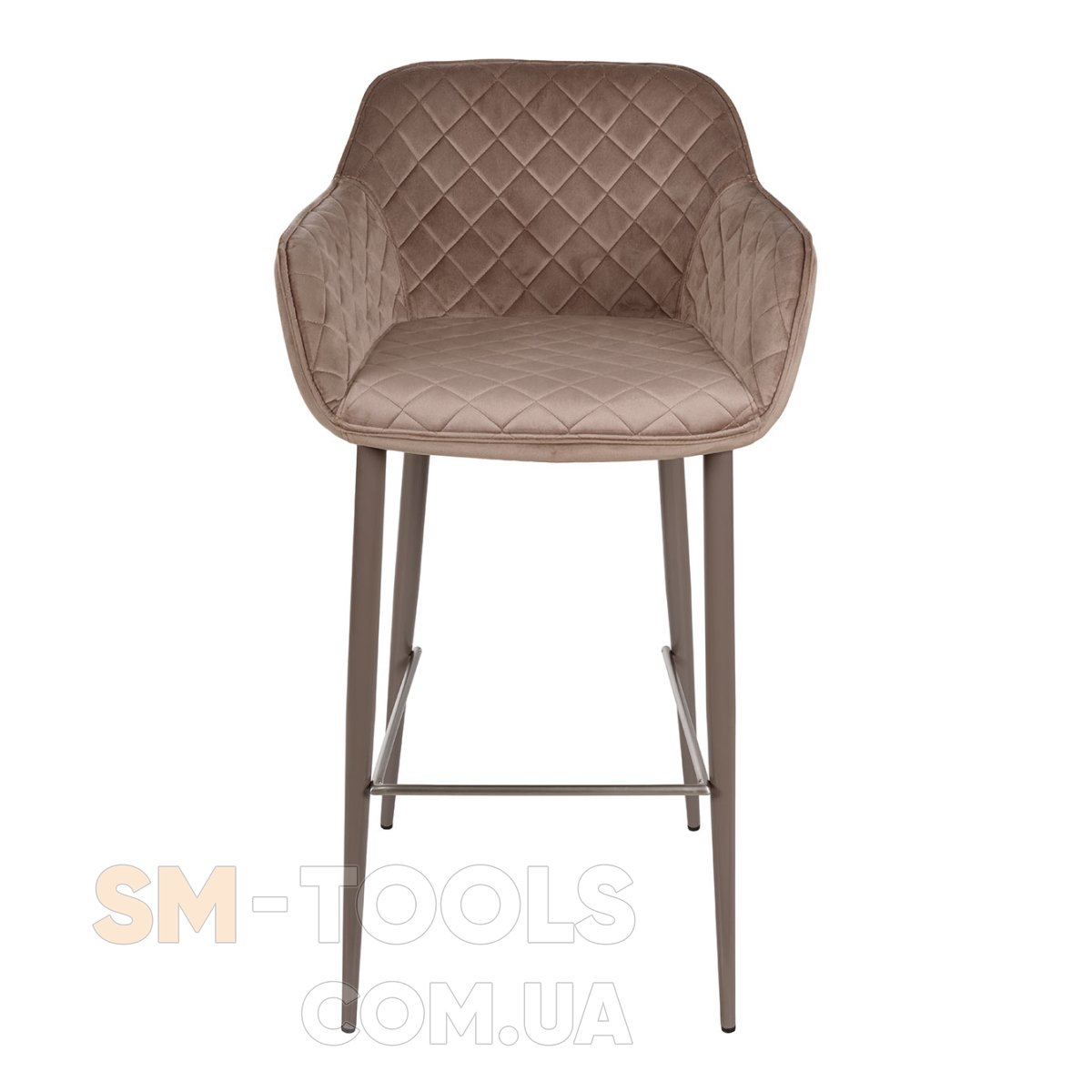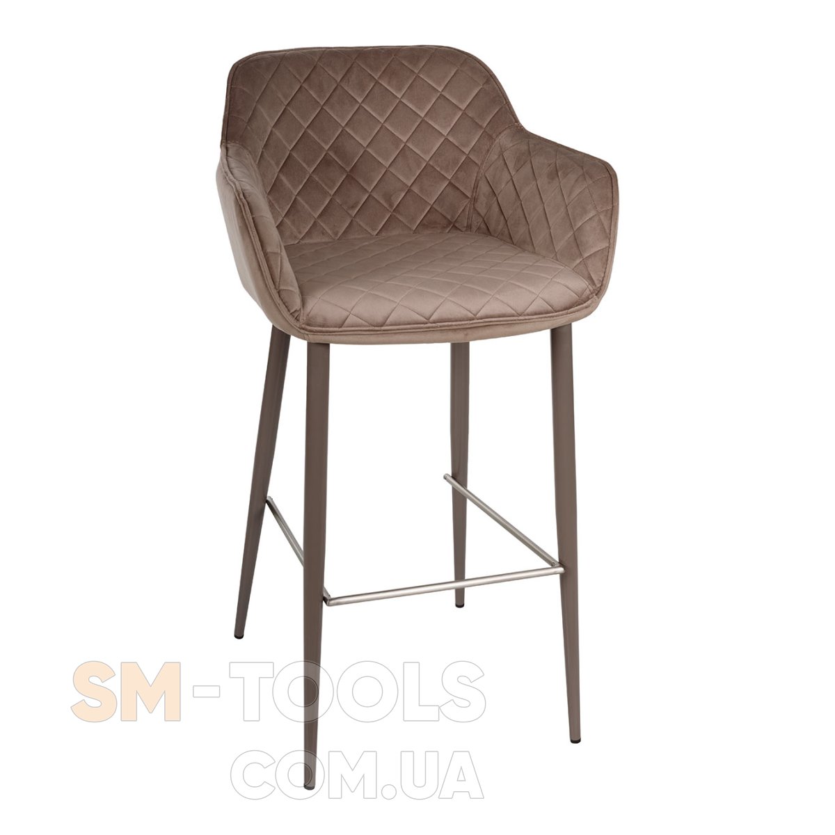 Удобный барный стул с подлокотниками Nicolas Bavaria, каркас которого выполнен из прочного металла и обтянут текстилем типа велюр с прострочкой “ромб”.