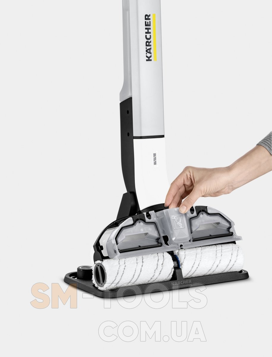 Непрерывная уборка чистой водой? Аккумуляторный аппарат для влажной уборки пола Karcher FC 3 Cordless с инновационной функцией самоочистки делает это возможным - попрощайтесь с обычной шваброй. На вращающиеся роликовые щетки постоянно подается чистая вода, в то время как грязь собирается в бачке для грязной воды. Аппарат позволяет мыть полы на 20% тщательнее по сравнению с обычными швабрами.