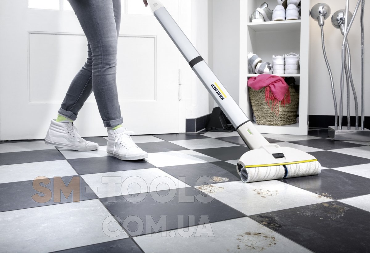 Аккумуляторная поломойная машина для дома FC 3 Cordless всегда моет пол чистой водой благодаря инновационной функции самоочистки. Его узкий корпус и шарнирное крепление щеточной головки позволяет помыть даже труднодоступные участки под мебелью.