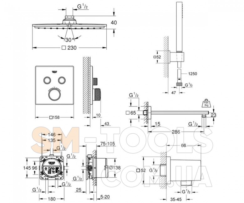 - Комплект верхней монтажной части для GROHE Rapido SmartBox 35600000