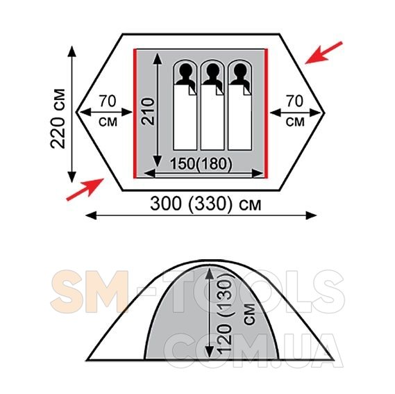 - Два вентиляционных окна с возможностью открытия изнутри палатки