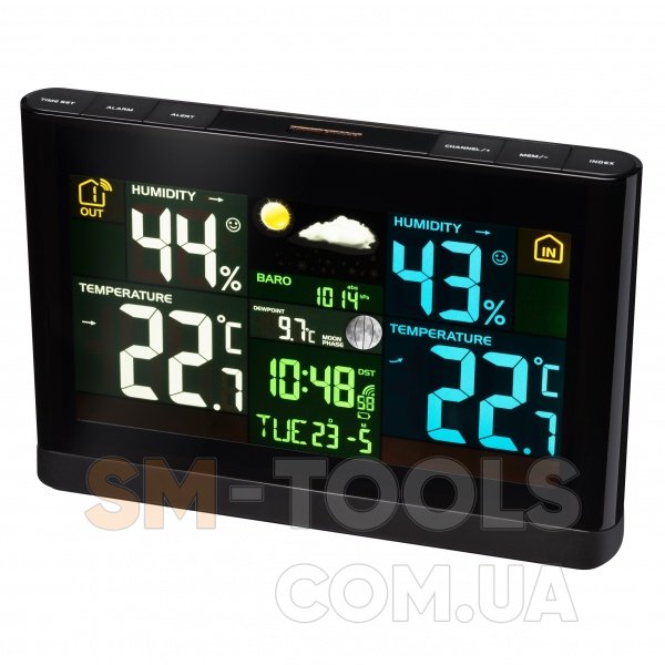 Современный лаконичный дизайн и широчайший спектр функций позволит с равным успехом использовать эту метеостанцию как в квартире, так и на приусадебных участках.