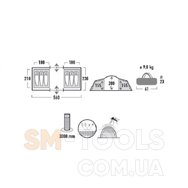 Габариты внешней палатки (ДхШхВ), мм: 5600x2300x2000