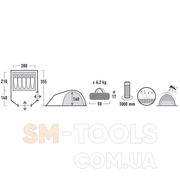 Габариты внешней палатки (ДхШхВ), мм: 3550x2850x1650