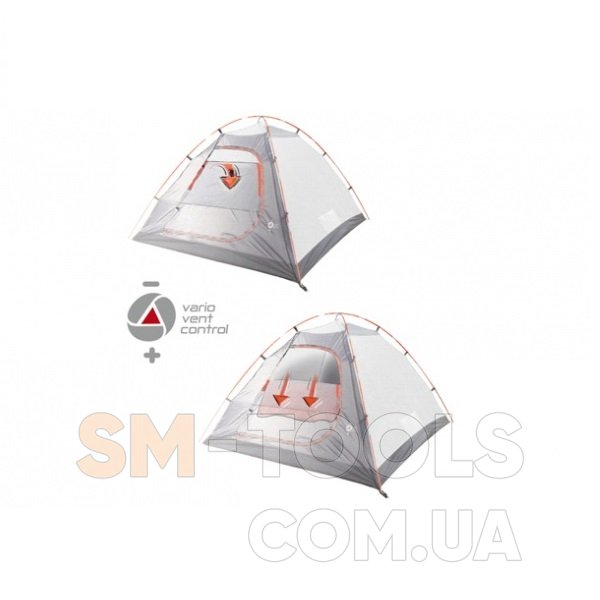 Кемпинговая двухслойная, 5-ти местная палатка для комфортного отдыха на природе. Два раздельных входа, удобный, просторный тамбур для вещей и организации кемпинговой кухни, москитная сетка, система вентиляции "Vario Vent Kontrol", простая установка.