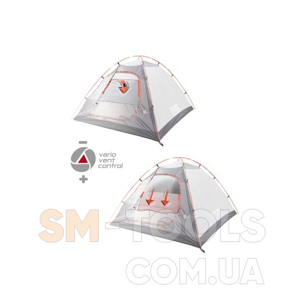 Современная туристическая, двухслойная, 4-ох местная палатка High Peak Nevada. Удобный тамбур для вещей, защищенный от непогоды вход с антимоскитной сеткой, система вентиляции "Vario Vent Kontrol", простая установка.