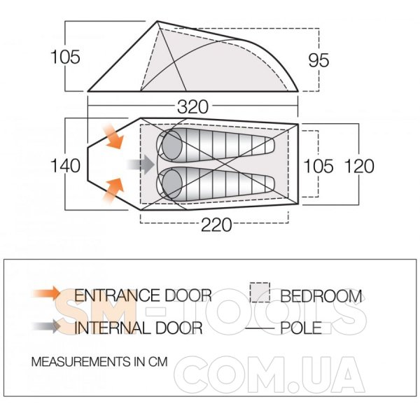 Внешняя палатка (ДхШхВ), мм: 3200 х 1400 х 1050