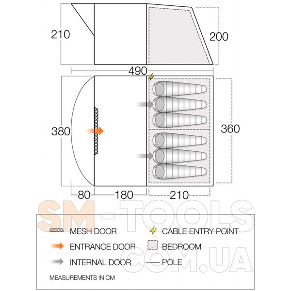 - Mesh Door - передняя сетчатая дверь, с помощью которой создается естественный поток воздуха по всей палатке.