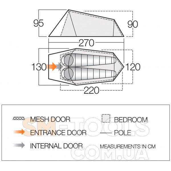 Внешняя палатка (ДхШхВ), мм: 2700 х 1300 х 950