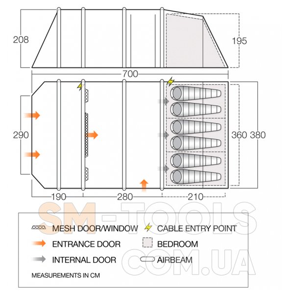 Внешняя палатка (ДхШхВ), мм: 7000 х 3800 х 2080