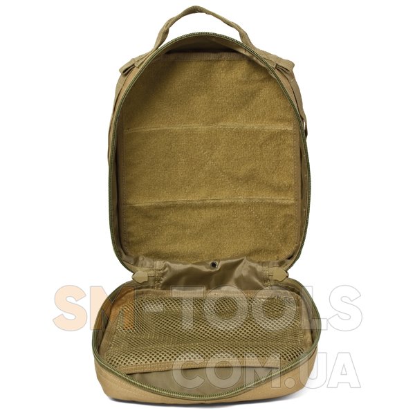 - Внутренняя часть основного отделения имеет платформу для крепления малых подсумков и приспособлений, оборудованных липучкой Velcro, в наличии есть карман сетчатого типа.