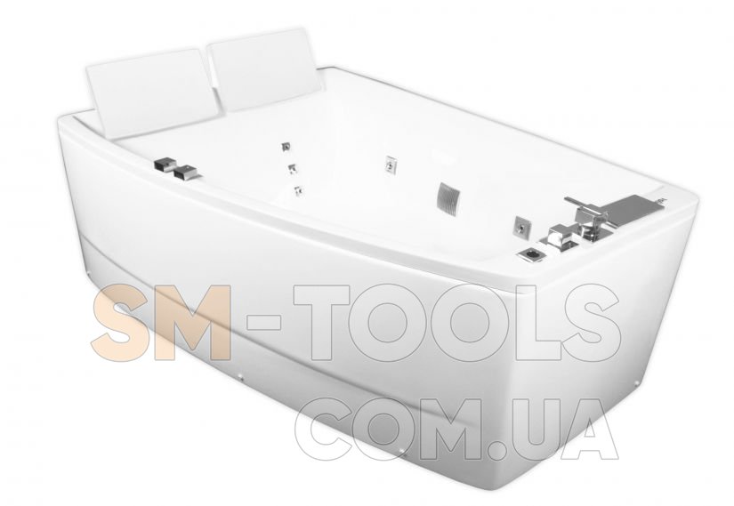 - два белых подголовника, смеситель в комплекте с носом наливом "водопад" плоский и ручным душем на шланге, сифон-перелив автомат