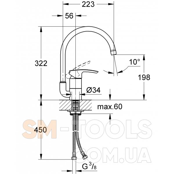 Однорычажный смеситель для кухни Grohe Euroeco (32752000)