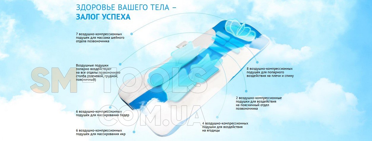 - Благодаря 33 встроенным 3D воздушным подушкам обеспечивается интенсивное вытяжение во всех отделах позвоночника.