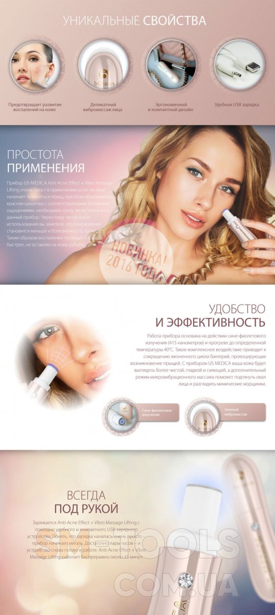 Часто мы с огорчением замечаем появление нового воспаления на своем лице. Кто-то сталкивается с такой неприятностью довольно редко, а кому-то постоянно приходится бороться с появившимися прыщами. Прибор US MEDICA Anti-Acne быстро спасает при первых признаках образования прыщей и воспалений на лице. Через некоторое время после первого применения вы увидите, что воспаление и болезненность прыща становится меньше. Благодаря прибору Anti-Acne прыщи исчезнут в течение 24-х часов! Беспроводное устройство очень компактное и по размеру напоминает губную помаду, поэтому оно поместится в любой женской косметичке или сумочке, и быстро поможет вам при первых признаках образования прыщей.