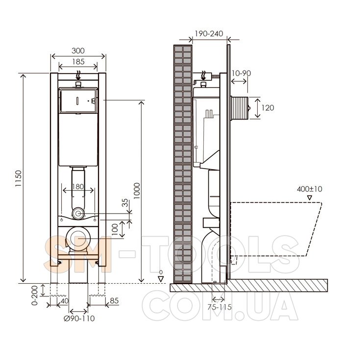 Назначение: для подвесного унитаза
